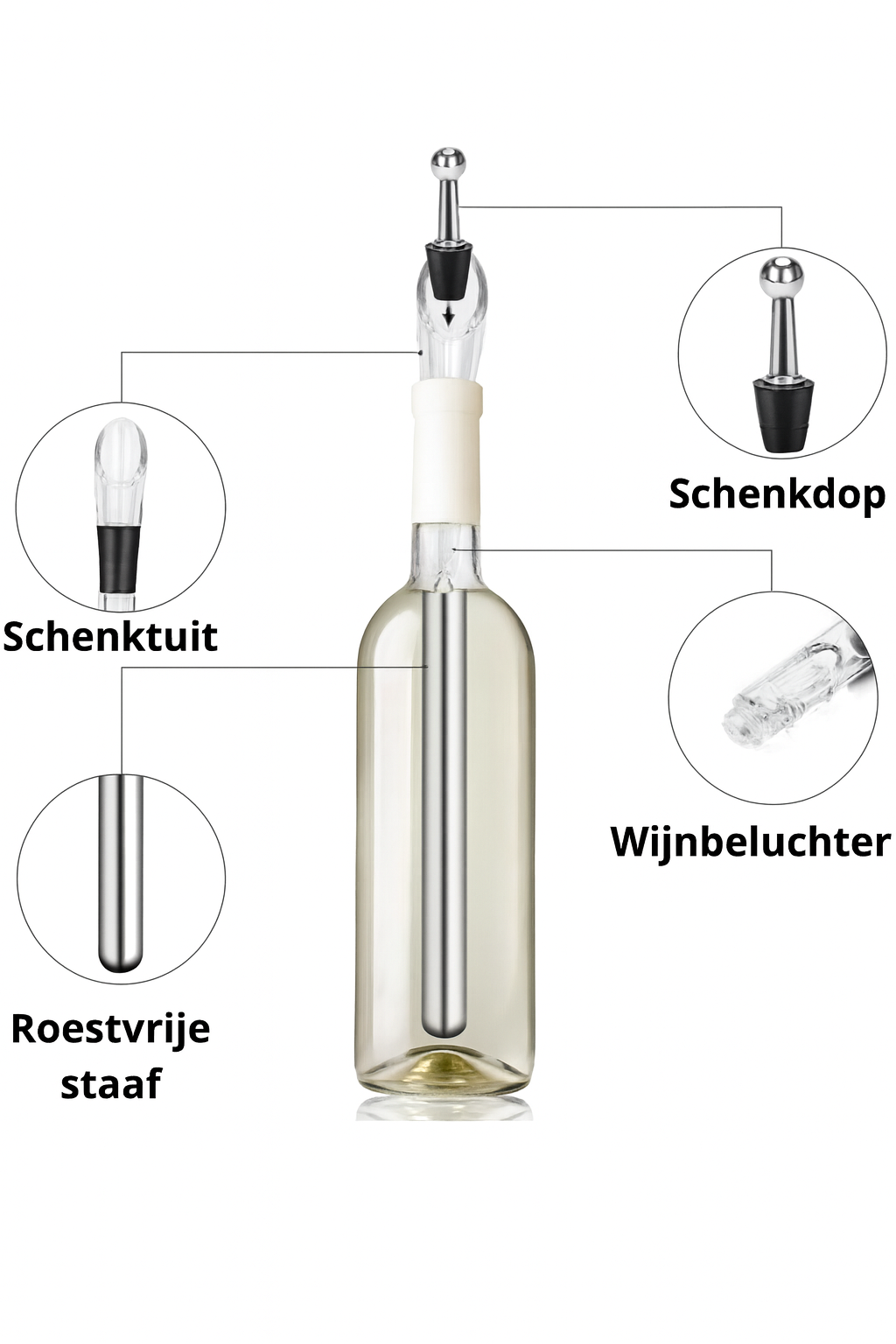 Houdt je wijn heerlijk koel zonder verdunning. De hoogwaardige roestvrijstalen staaf blijft lang koud en koelt je wijn van binnenuit. Zo blijft de smaak puur – geen smeltend ijs, geen waterige wijn. Perfect voor witte wijn, rosé of bubbels.